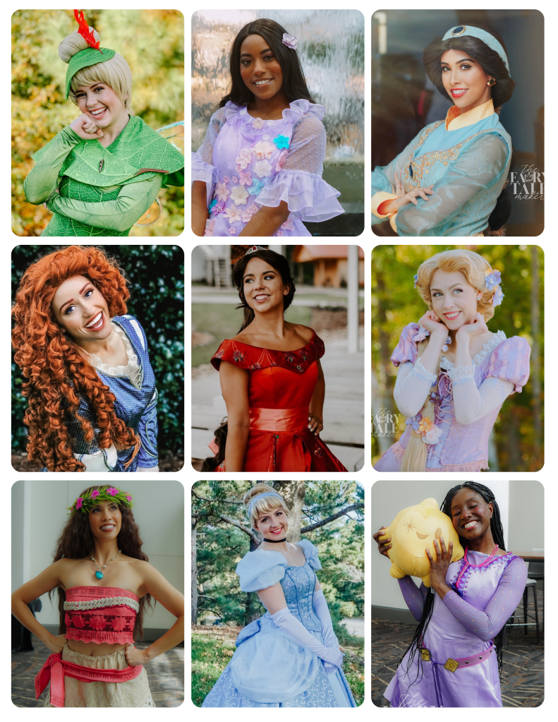 With over 100+ characters on our roster, our line-up is ever growing and expanding. From princesses & fairies- to swimming mermaids and superheroes, we’re sure to have your favorite hero or we’re happy to add them to our line-up free of charge! When we add a new character to our line-up, hours of research are devoted to create the most accurate representation of the personality you know and love. The difference is in the details- we select only the highest quality fabrics, costume accessories, and handcrafted wigs to ensure that the final outcome meets or exceeds the level of quality you would see at a theme park.